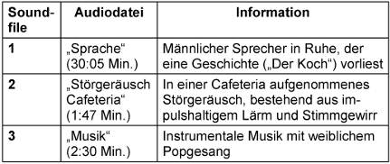 Tabelle 1: Übersicht der verwendeten Soundfiles