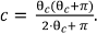 Hierbei ist r der Radius, gemessen vom Modiolus zur lateralen Wand der Cochlea. A ist die Strecke vom runden Fenster zur gegenüberliegenden medialen Begrenzung der Cochlea. θ ist der Einführungswinkel (in Radiant) und θc ist das dem Verhältnis der Strecken A/B in Radiant. Escudé et al. [4] konnten durch Analyse von N=42 Innenohren zeigen, dass das Verhältnis A/B relativ konstant ist (A/B=1,32). Dieses Verhältnis eingesetzt in Gleichung 4 ergibt ein θc≈4,1 rad.